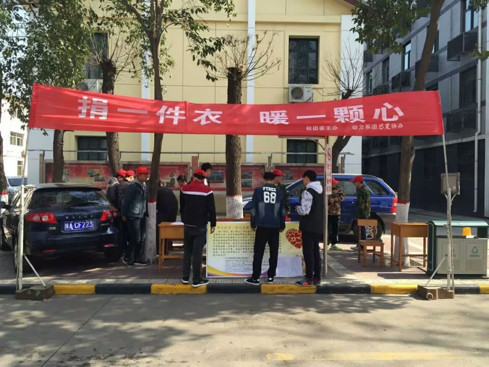 2017年2月22日-27日,动力系团总支携校团委于行政楼口举办了“暖心衣橱”衣物募捐活动。
