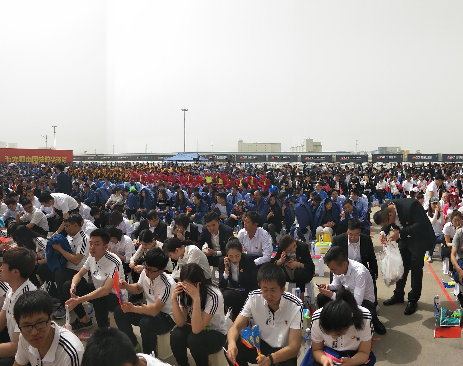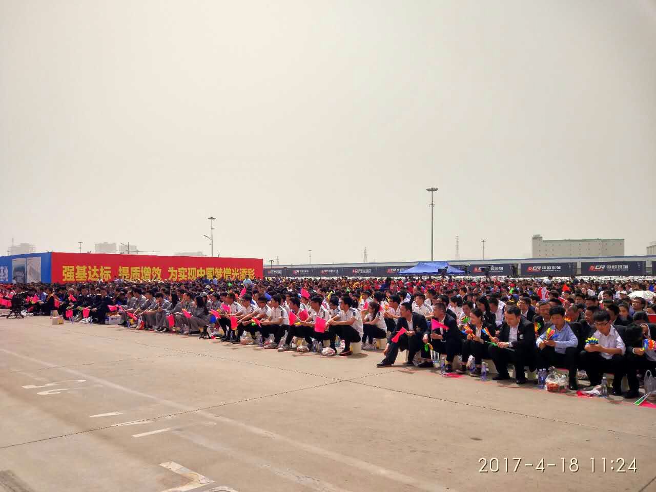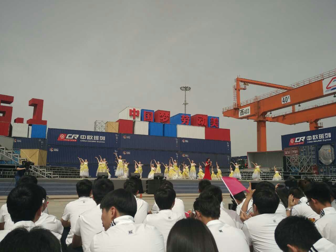 4月18日下午,2017年心连心“中国梦 劳动美”五一分会场在国际港务区中欧班列始发站内录制。两台气势磅礴的龙门吊车徐徐升起,央视五一国际劳动节心连心特别节目西安分会场录制正式开始。演出舞台搭建在国际港务区中欧班列始发站内,背景用集装箱搭建而成,一辆火车头当做移动平台,淋漓尽致展现了内陆港的精气神。为配合节目演出,台下西安铁路局各个机务段职工组成的各色方阵摇旗呐喊,庆祝属于劳动者自己的节日。