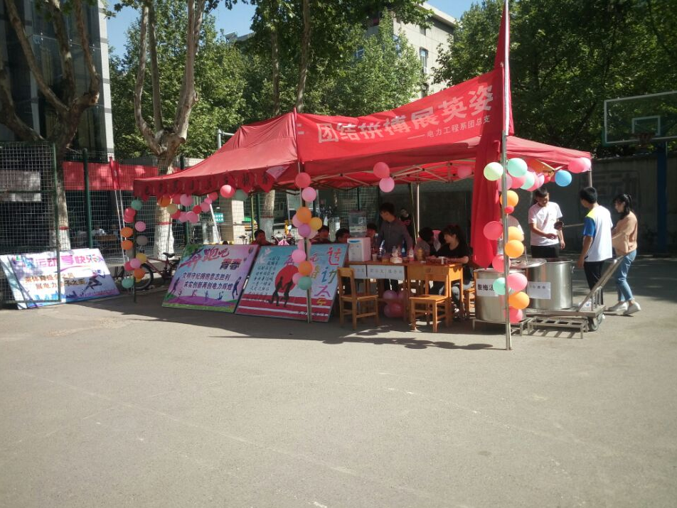 运动会前,电力系团总支通过信息化手段积极宣传,在微信公众号、微博等招募志愿者,运动会期间,所有成员热情大方的向过往的老师、同学供应绿豆汤、酸梅汤、饮用水、湿巾纸等。让大家在接受志愿服务的同时,充分感受到电力系团总支志愿者的热情、耐心和细致。