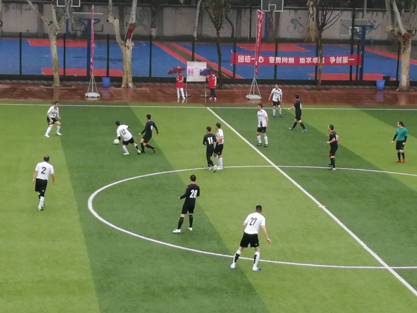 不久,双方球员和一些观众进入了场地。双方球员握手以后,随着主裁判的一声哨响,比赛正式拉开了帷幕。我们青协的成员在场边有条不紊的保证比赛顺利进行。我们有的担任计分员,有的担任捡球员,有的则是拉拉队,为自己喜欢的球员和精彩的足球比赛呐喊助威,有的手里拿着水毛巾等以备不时之需。随着比赛的进行双方队员你攻我守,你来我往我们也因为球员的精彩操作而喝彩连连。虽然天空中的雨越下越大,但是球员们冒着雨踢比赛的热情丝毫不减。他们的衣服都已经湿完了。但是他们依旧在奋力比赛。我们场边的每个青协的志愿者也都热情高涨,在保障比赛正常进行的同时,我们淋着雨给球员们大声呐喊助威。虽然我们衣服湿了,嗓子哑了。但是我们依旧坚守在比赛场地为队员们提供志愿服务。
